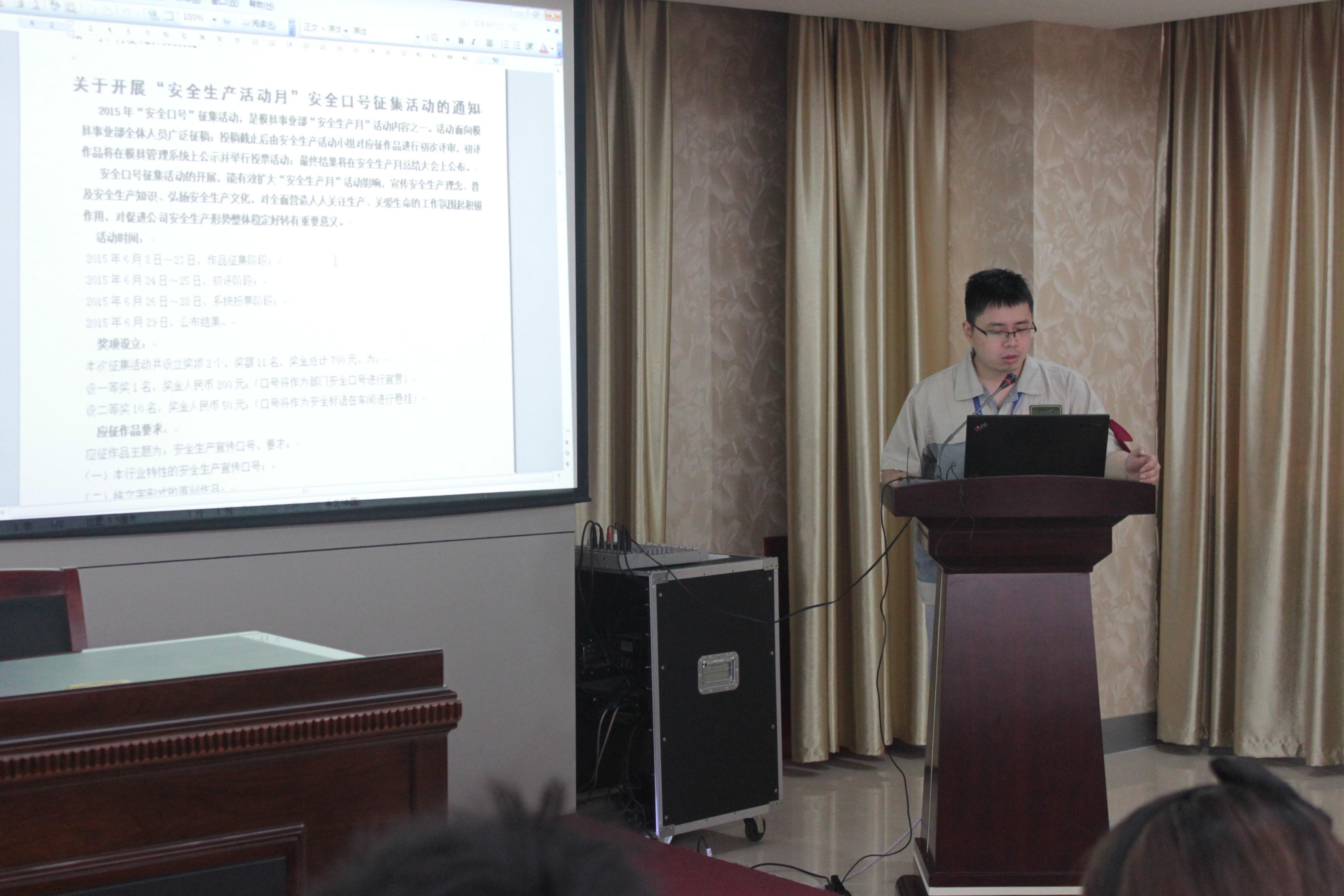 在炎炎夏日里合肥高科迎來了2015年安全生產(chǎn)月。模具事業(yè)部在擬定了安全生產(chǎn)月的活動計劃后,在6月8日召開模具事業(yè)部安全生產(chǎn)月誓師大會。